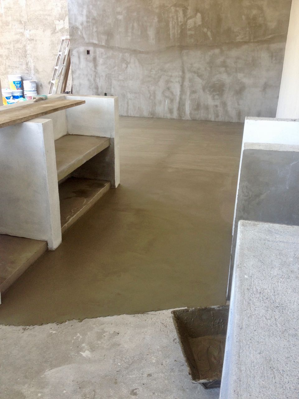 Walls are being primed and painted, built in furniture/shelving is complete, some electrical/plumbing finishes are being installed and the concrete pulido accent walls and floors are getting done on the kitchen/master bath level. After this weekend some of the crew will begin working on the second level(kids bedrooms) and the remainder of the crew will begin on the 4th level that will be a storage room/laundry/utility room and eventual terrace with ocean view. At some point soon I will start completing the concrete work that I will contribute to the project but even finding a space to work in right now is a challenge with all the materials staged for the current parts of the project going on.